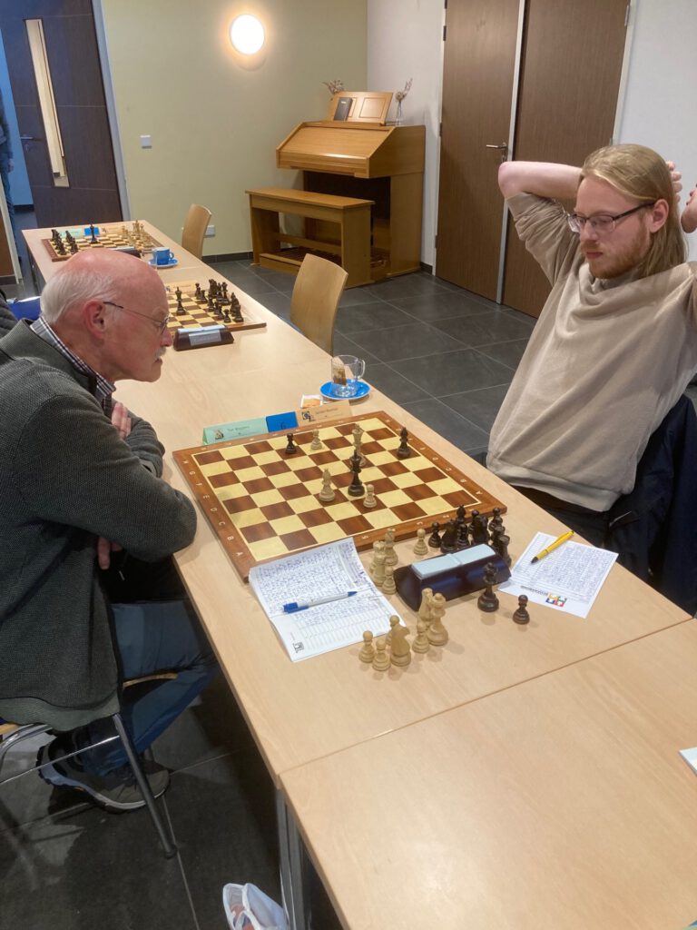 Albert Verhaaren was zoals vaak snel klaar met zijn partij. Soms met goede afloop maar niet altijd. Ook nu boekte hij geen succes. Dat was er wel voor Simon van Dijk aan het hoogste- en invaller Henk van den Berg aan het laagste bord.