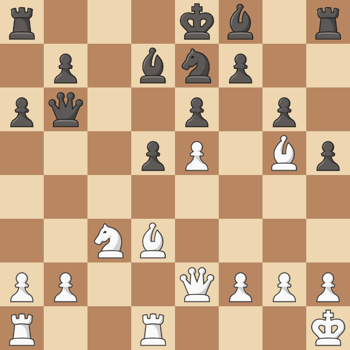 Wit heeft in de opening een pion geofferd voor een snelle ontwikkeling en zwart heeft hem daarbij wat geholpen door wat onnodige zetten met zijn pionnen op de koningsvleugel. Hierdoor is hij nog niet aan rokeren toegekomen. De vraag is hoe wit nu het beste verder kan gaan. Henk koos voor 15. a4, positioneel wat minder, maar zeker geen slecht idee. Joey speelde hier 15…Pf5?! Een betere optie was 15…h4 met een klein voordeeltje voor zwart. Henk speelde nu 16. a5, een logisch vervolg van zijn vorige zet. Sterker was echter 16. Lxf5!, gxf5 17. Txd5! en de toren kan niet genomen worden vanwege de meest vreselijke dreigingen. Met 17…Lc6 kan zwart de boel nog net bij elkaar houden.